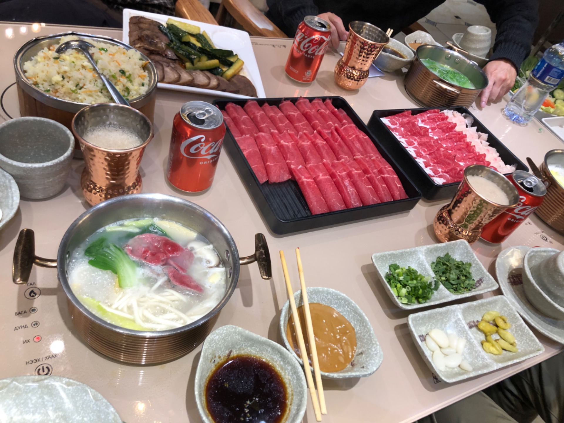 モンゴル最後の夕食はしゃぶしゃぶ。牛肉、羊肉、鶏肉とあり、日本人向けのチョイスをしてくれたのでしょう!ごちそうさまでした。